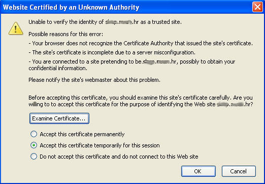Za svaki od navedenih slučajeva, browser vas pita da li želite nastaviti raditi. Nastavak ne znači da će vaši podaci putovati ne-kriptirani. Naprotiv, vaši podaci će biti uspješno kriptirani i zaštićeni od zlonamjernika koji "skeniraju" promet po mreži. Međutim, kako certifkat nije validan i provjeren, preporučljivo bi bilo provjeriti vlasnika web stranice prije nego se odlučite za nastavak.