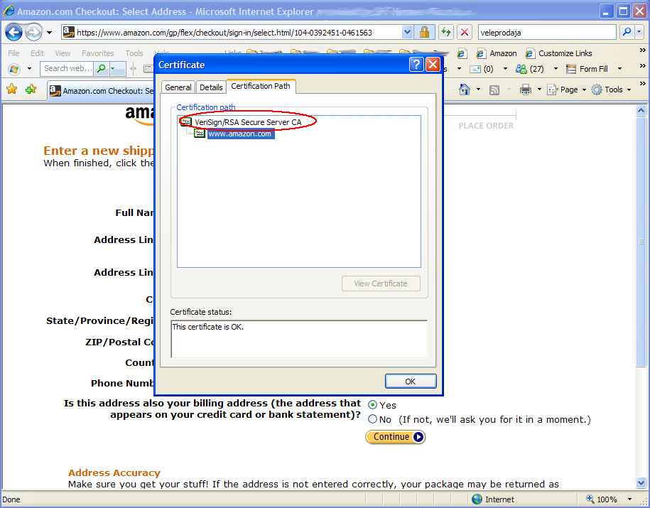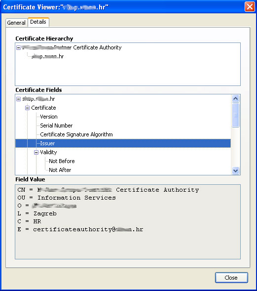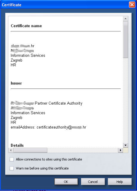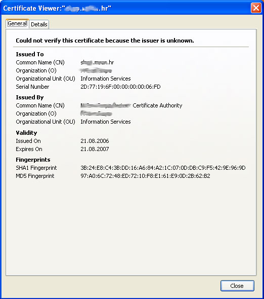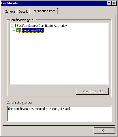 Odabirom opcije "View certificate" pogledati ćemo informacije o certifikatu i organizaciji koja ga je izdala.