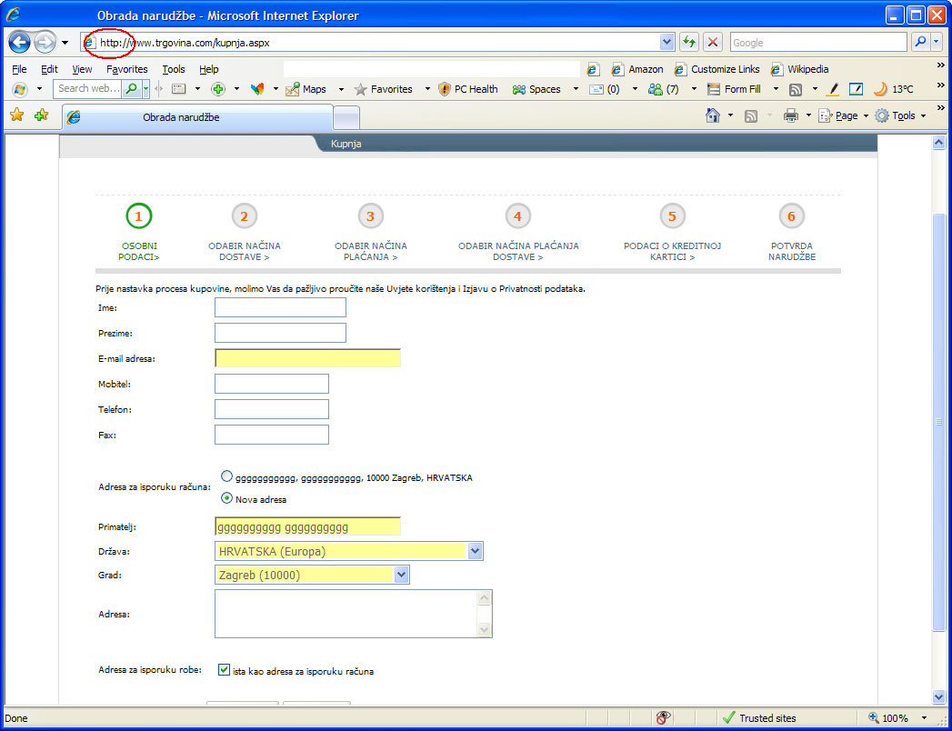 Dugo koristim platne kartice na Iternetu i refleksno prva stvar koju proveravam je da li je konekcija sa sajtom sigurna (najcesce ono https koje pise uz link, i specijalna ikonica u uglu browsera). Nista od toga ne postoji na ovom sajtu.
