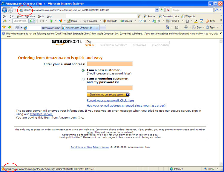 Ukoliko primijetite da web adresa, na kojoj je postavljen vaš browser, započinje sa http://, a na web stranici trebate predati povjerljive podatke, dobro razmislite hoćete li to učiniti. Dodatno, ukoliko primijetite da niti slijedeća stranica, na koju prosljeđujete podatke, nije zaštićena koristeći https, budite svjesni da će podaci putovati mrežom potpuno nezaštićeni.